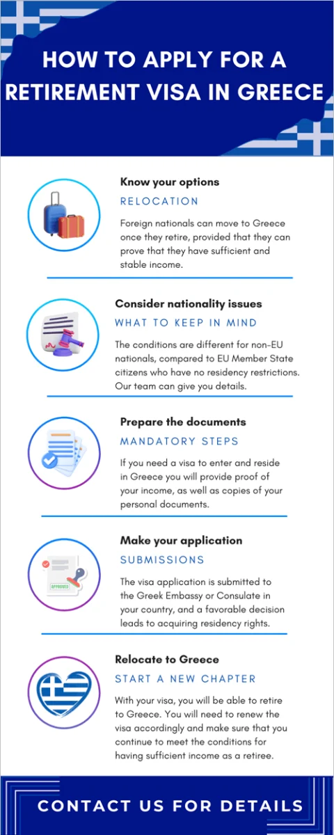 You can contact us if you want to retire to Greece and need more details on how to proceed based on your nationality.
